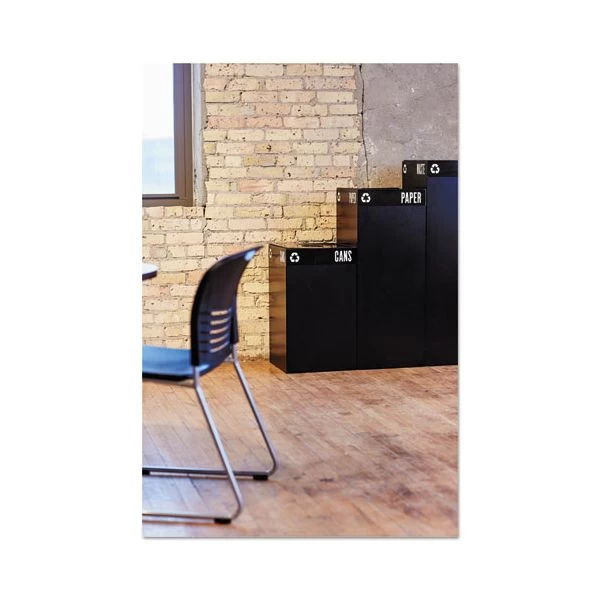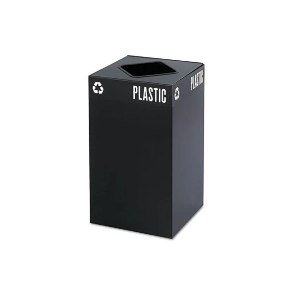 Safco Public Square Plastic-Recycling Container, Square, Steel, 25gal, Black – Encourage recycling in every workspace setting with these high capacity recycling receptacles. Attractive heavy-gauge steel containers feature a protective powder coat finish for durability. Interior catch-wires conveniently secure plastic liners in place. (Slotted lids and liners sold separately.) Different heights allow for easy configuration and visibility.