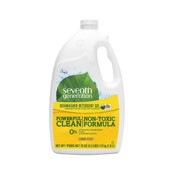 Seventh Generation Natural Automatic Dishwasher Gel, Lemon, Jumbo 70 oz Bottle, 6/CT – Get clean, bright, residue-free dishes naturally. Nontoxic formula uses plant-based enzymes for greater cleaning power. Makes effortless work of whatever is waiting in your dishwasher. Chlorine bleach-free, phosphate-free and has no harsh fumes. No dyes or synthetic fragrances.
