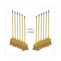 Boardwalk Corn Fiber Angled-Head Lobby Brooms, 55″ Handle, Yellow, 12/Carton