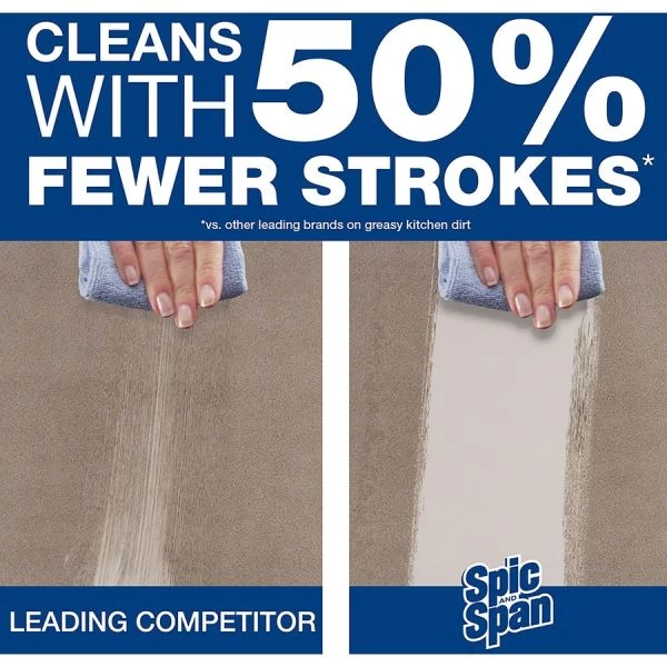 Spic and Span 3-in-1 Cleaner – Spic and Span Professional 3-in-1 Disinfecting Multi Surface Cleaner saves you time and money by harnessing the power of a professional-strength, multipurpose cleaner; a brilliantly shining glass cleaner; and an EPA-registered, hospital-use disinfectant. This Spic and Span concentrate is a patented, dual-solvent formula designed to dissolve greasy soils and provide an easy wipe-up and then simply evaporate to leave your surface streak-free and disinfected. For those environments where disinfecting is of the utmost importance, the hospital-grade formula is an effective disinfectant cleaner. It is included on the EPA List N of disinfectants for use against the novel coronavirus SARS-CoV-2. This versatile, multi-surface cleaner can be used on most surfaces, including stainless steel and glass. Dilute at 1:14 or 8.5 oz per gallon of water.
