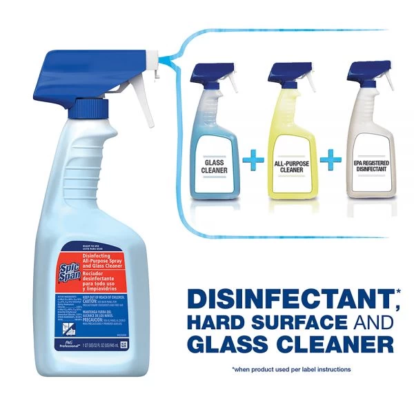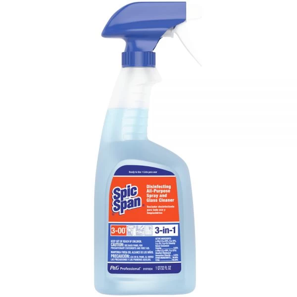 Spic And Span Disinfecting All-Purpose Spray & Glass Cleaner, 32 Oz, 4 Spray Trigger Per Case, Case Of 8 Bottles – Spic and Span Disinfecting All Purpose Cleaner Spray and Glass Cleaner saves you time and money by harnessing the power of a professional-strength multi purpose cleaner, a brilliantly shining glass cleaner, and an EPA-registered hospital-use disinfectant* in one product. An effective disinfectant, Spic and Span Disinfecing All Purpose Spray and Glass Cleaner kills SARS-CoV-2 on hard non-porous surfaces and kills Influenza A Virus in 2 minutes** Spic and Span Disinfecting All Purpose Cleaner Spray and Glass Cleaner has a patented, dual-solvent formula designed to dissolve greasy soils and provide an easy wipe-up, then simply evaporate to leave your surface streak-free and disinfected. For those environments where disinfecting is of the utmost importance, its hospital-grade formula is an effective disinfectant cleaner.* *when used per label instructions **Not yet approved in CA