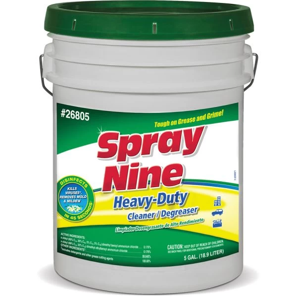 Spray Nine Multi-Purpose Cleaner & Disinfectant – Spray Nine’s professional-strength cleaning power works hard to remove all types of dirt, grease, grime and stains. It is ideal for facility maintenance, cafeterias, breakrooms, locker rooms and more. This one product has nine uses: 1) cleans; 2) degreases; 3) disinfects against viruses in 30 seconds; 4) disinfects against bacteria in 45 seconds; 5) sanitizes in 10 seconds; 6) kills fungus in 3 minutes; 7) deodorizes; 8) controls mold and mildew and 9) removes stains. Heavy-duty Cleaner/Degreaser Plus Disinfectant is EPA-registered and NSF C1-Rated.