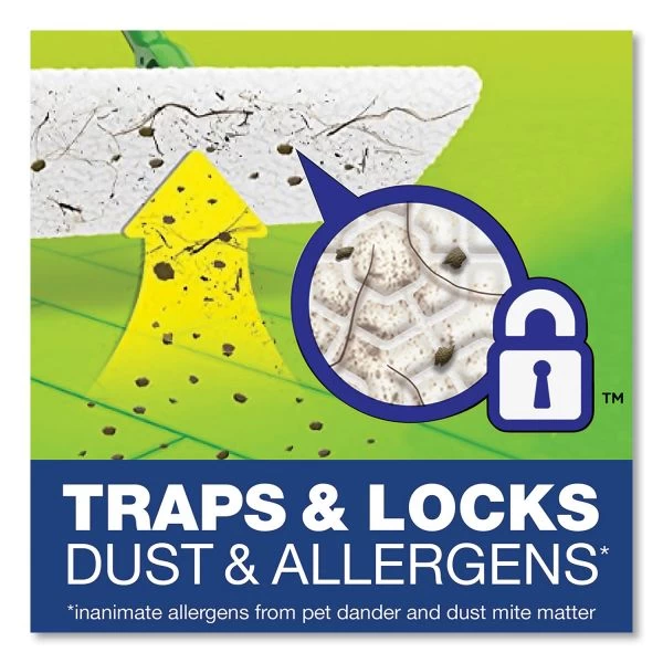 Swiffer Sweeper Mop, 10 x 4.8 White Cloth Head, 46″ Green/Silver Aluminum/Plastic Handle, 3/Carton – Removes dust, dirt, hair and allergens from finished floors. Use with disposable Swiffer® cloths (sold separately). Lightweight swivel head adjusts to get into hard-to-reach places. Use with dry or wet cloths. Mop handle breaks down into four parts for storage and to adjust length.