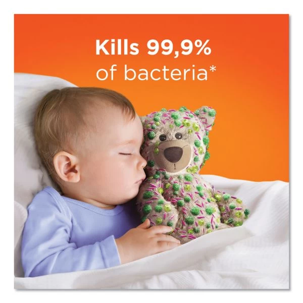 - Kills 99.9% of bacteria* when used as directed (*Staphylococcus aureus, Salmonella enterica, Escherichia coli, and Proteus mirabilis on hard non porous surfaces; Enterobacter aerogenes, Staphylococcus aureus on soft surfaces/fabrics).