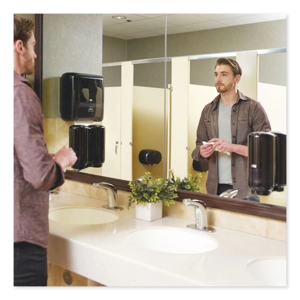 Tork Elevation Foam Skincare Automatic Dispenser with Intuition Sensor, 1 L/33 oz, 4.45″ x 5.12″ x 10.94″, Black – The Tork Elevation Foam Skincare Automatic Dispenser with Intuition Sensor has a functional and modern design that makes a lasting impression on your guests and can be used with a wide range of skincare products in sealed bottles. Its touch free dispensing ensures good hand hygiene for all users. It’s high capacity helps to minimize maintenance time while the LED level indicator shows when a refill is needed. EasyCube compatible.