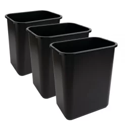 Highmark Rectangular Plastic Wastebasket, 6.5 Gallons, 15″H X 10″W X 14-1/4″D, Black, Pack Of 3